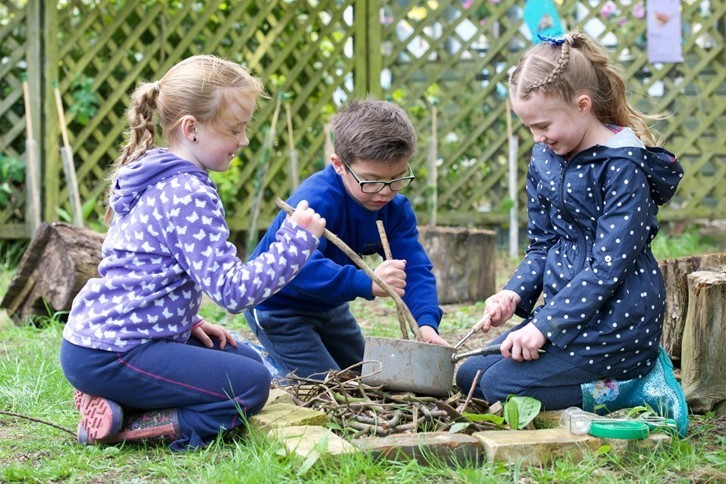 We are extremely lucky to have a wonderful Forest school area, which includes a pond, wild-life area, mud kitchen, fire pit area, den building area and a swing/rope area. All children have a weekly Forest School session of about an hour. Teachers work with Forest School leaders every year to develop a curriculum which is effectively linked from classroom to Forest School and back.